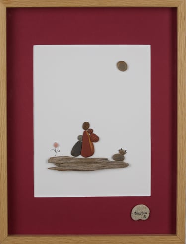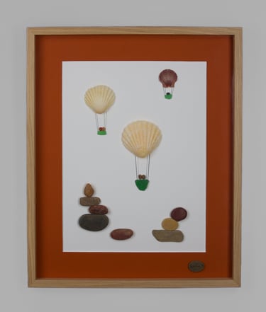 Durante anos, estive dedicada à pintura. Atualmente dou vida a composições únicas com pequenas pedras, conchas e penas, buscando a harmonia entre mar e terra.