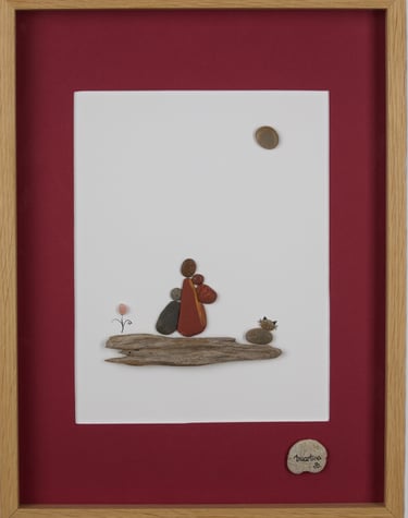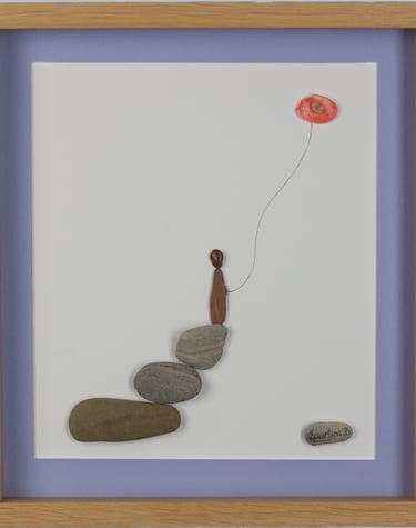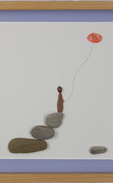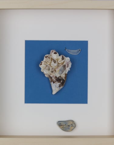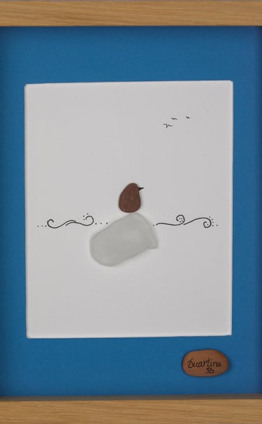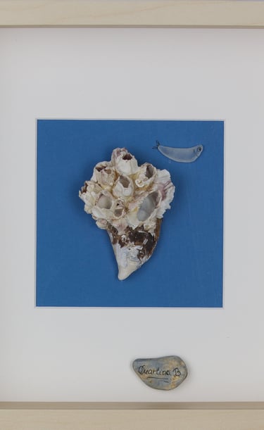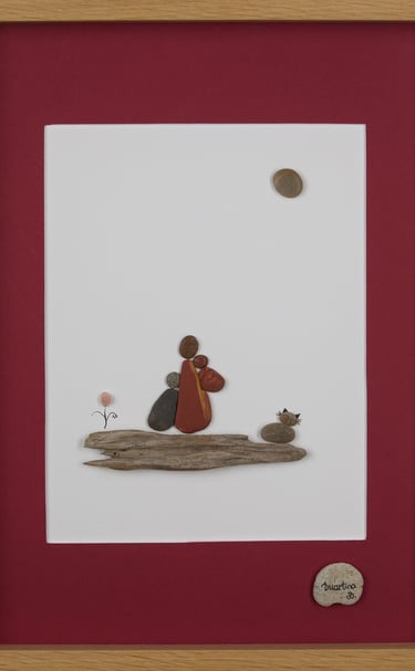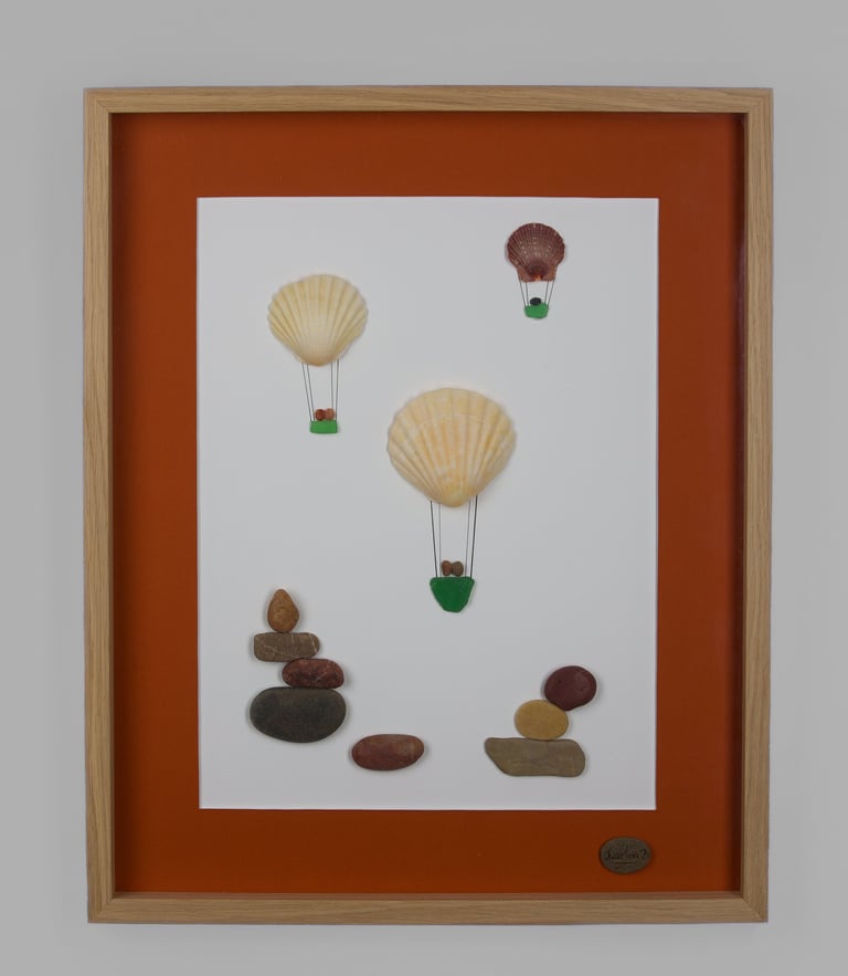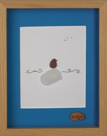 Durante anos, estive dedicada à pintura. Atualmente dou vida a composições únicas com pequenas pedras, conchas e penas, buscando a harmonia entre mar e terra.